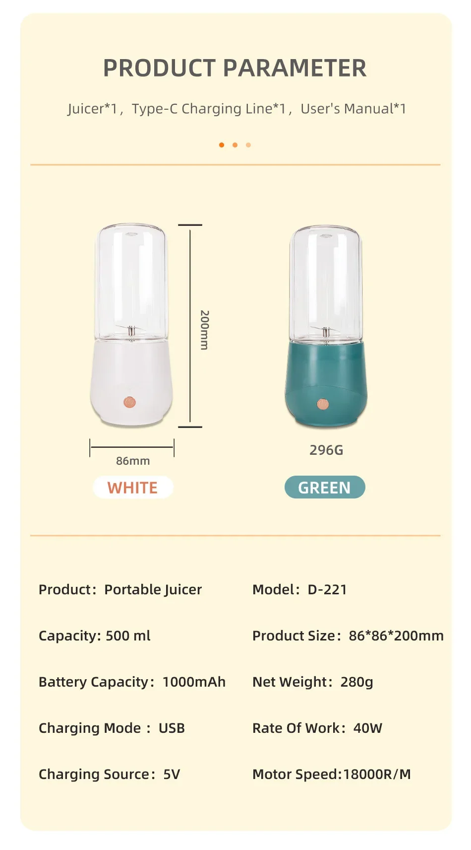 Model Number: Portable Electric Juicer
